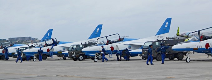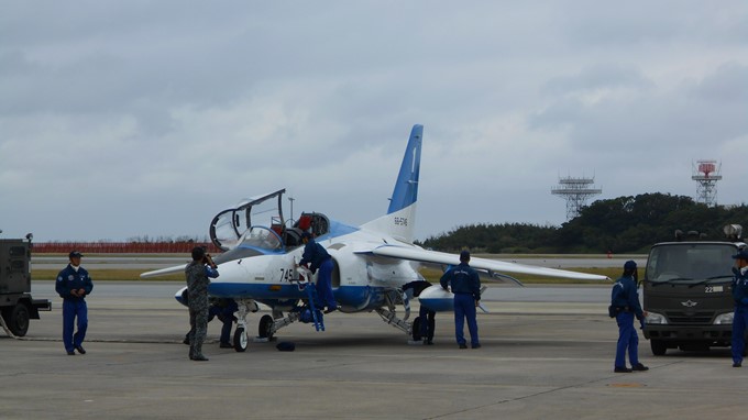 やっぱり今回もなかなか近くで見ることができず、見えるのはT-4の青い尾翼の一部だけで、あとはほとんどが大衆の後頭部ばかり(;^_^A