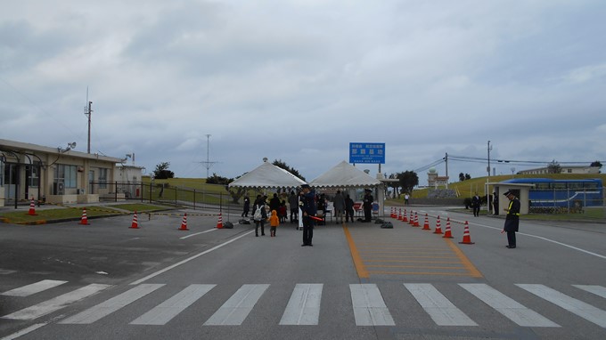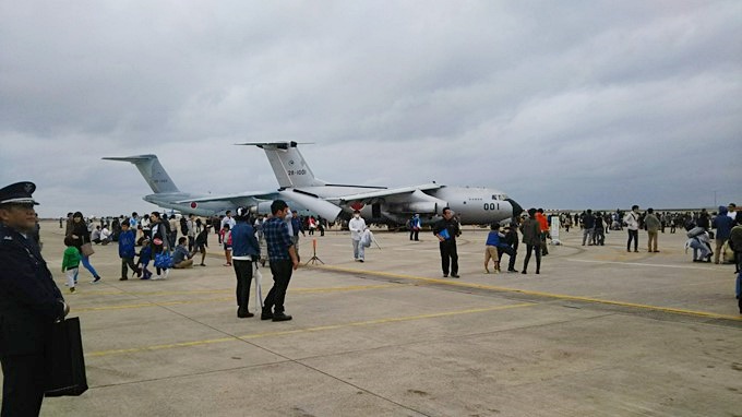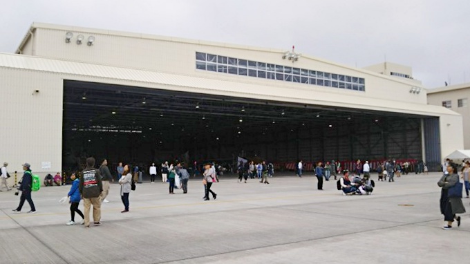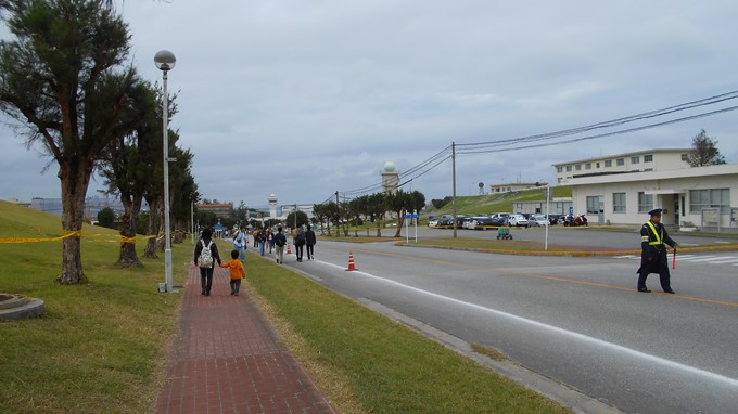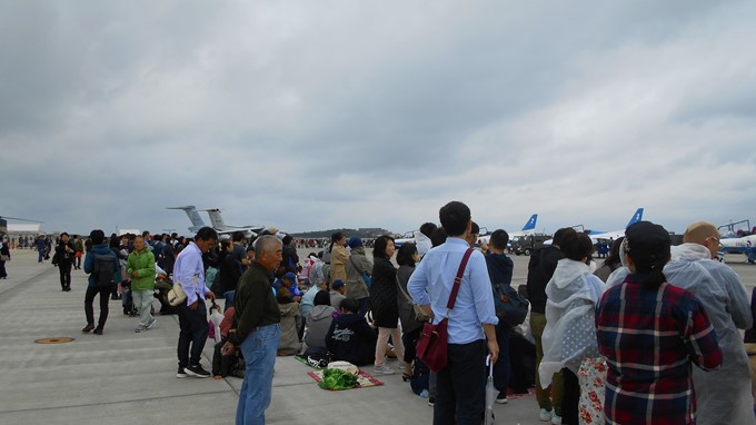 車で近くまで行って駐車場に入れて、モノレールを利用したまではいいけど、降りた駅から那覇基地ゲートまでも長いのに、さらにゲートから展示会場までの距離が遠すぎる。
