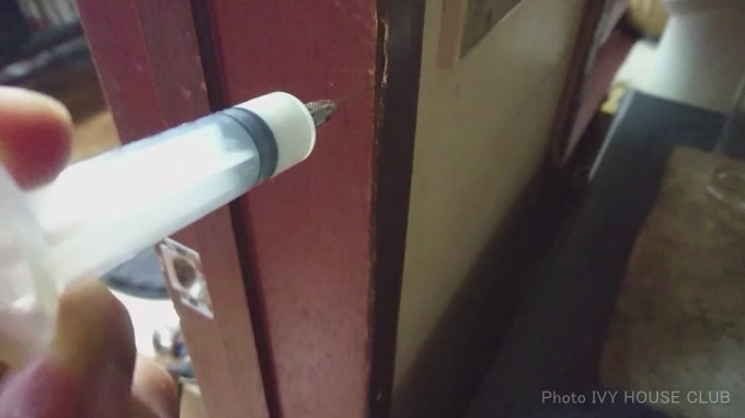 木工ボンドは水溶性なので、使用後の注射器は水道水でしっかり洗えば