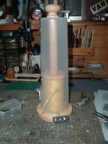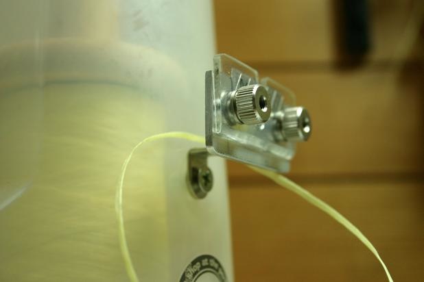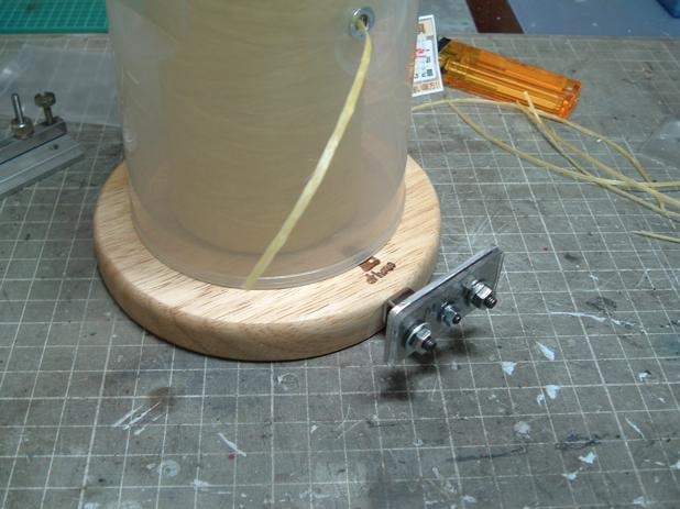 アクリル板でセーフティーガードを追加して安全を確保し、アクリル板には糸が逃げてしまわないようにくぼみを付けました。