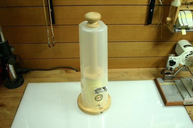 他の糸と同じように壁掛けホルダーには入れられないので、シニュー手縫い糸用の専用ホルダースタンドを作ってホコリや汚れから保護できるようにしました。