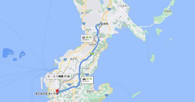 沖縄市からこんなに離れた場所にある「きくや」さん