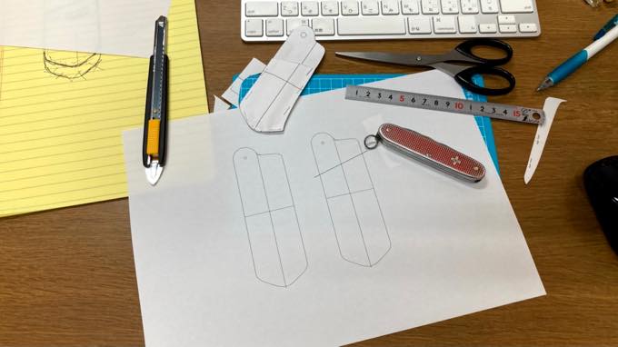 たまたま近くにあったこの古いビクトリノックスが目に入ったので「そうだっ!このナイフのケースを作ってみよう」ってことになりました。