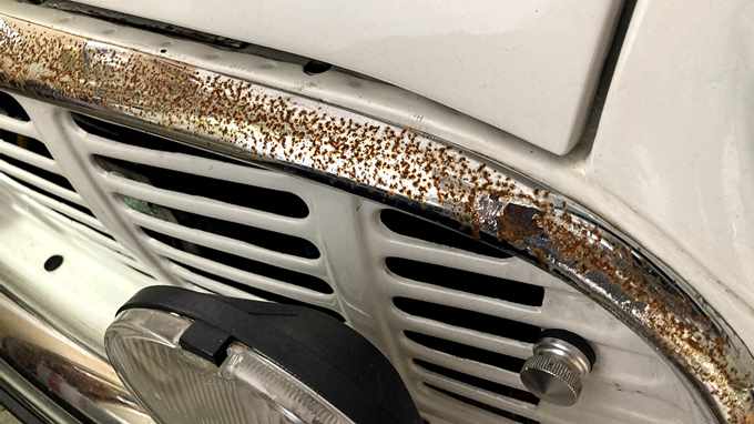 ミニのフロントメッキグリルの錆が止まらない!
