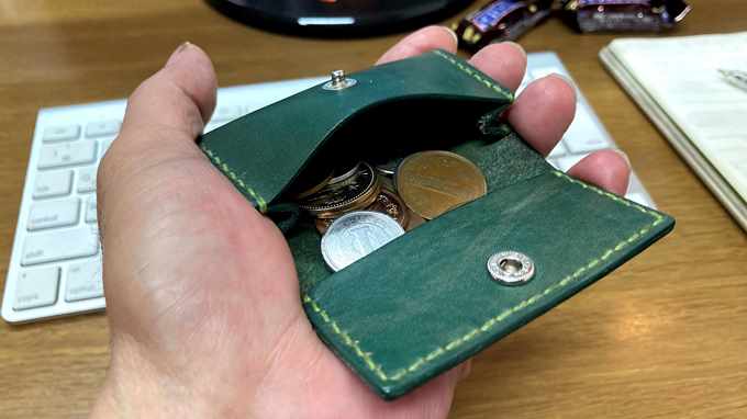 こんなにも小さなモノだけど割と沢山のコインが入るから