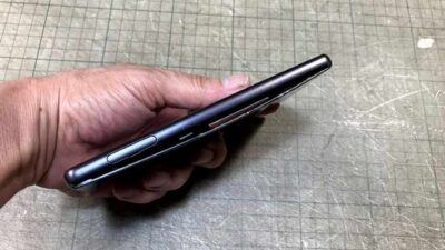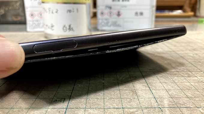 内臓バッテリーが膨張してケースの裏蓋がめくれ上がってます