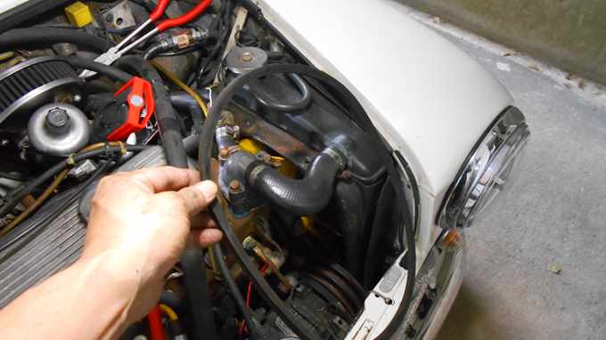 ラジエターのフィンを傷つけないように悪戦苦闘の末に