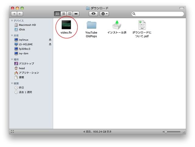 ダウンロードフォルダに「video.flv」又は「video.mp4」