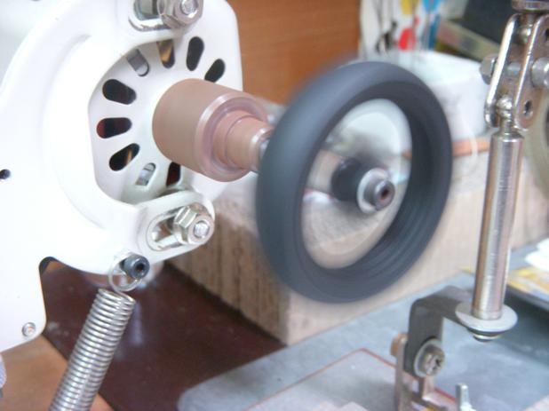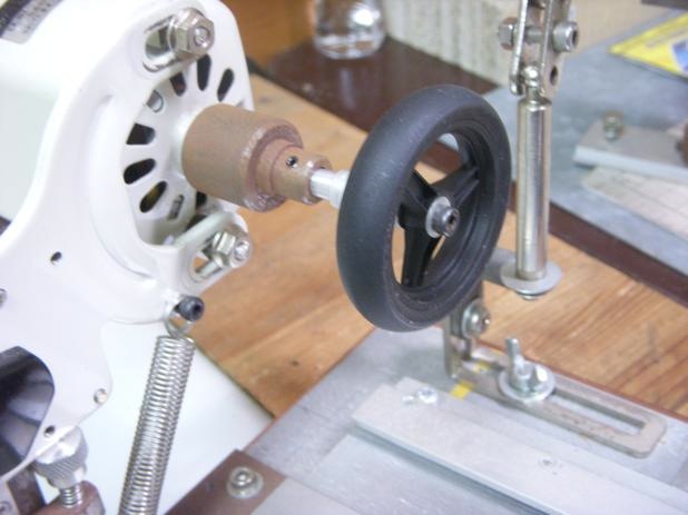 このように取り付けて、タイヤを回転させながら表面に軽くサンドペーパーを当てて質感を調整します。