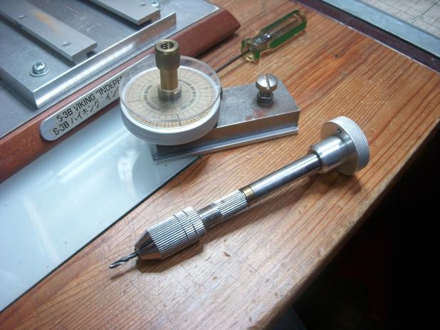 必要に応じてピンバイススタンドで使ったり、分解して割り出し盤に装着などして使用します。