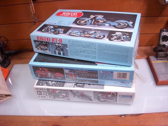 写真のモデルキットはほんの一部で、反対側の棚にはまだ残っている他のプラモが積まれているが、とりあえず今後はオートバイを中心にプラモを楽しみたいと思っている。