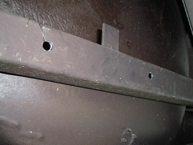 センターマフラーを吊り下げるハンガーフックを取付けるための穴開け加工の作業です!