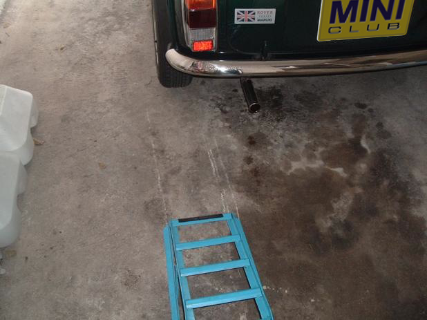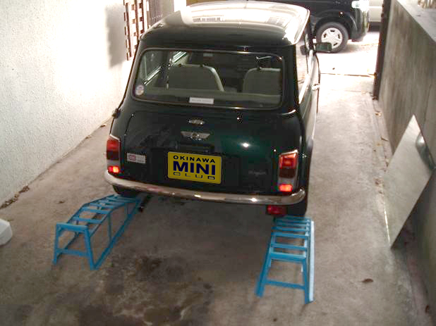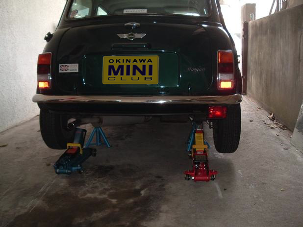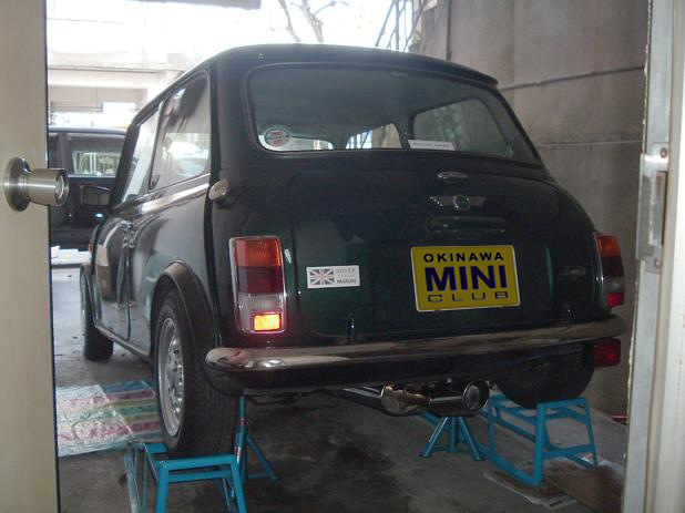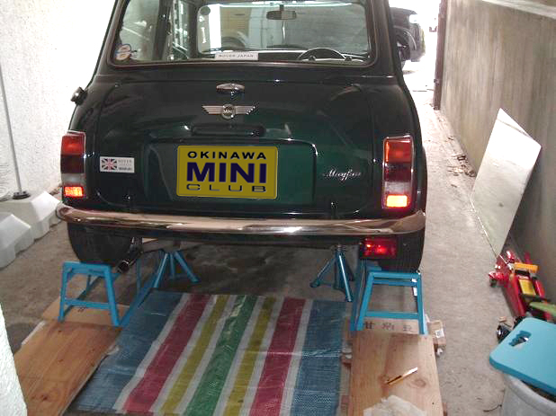ローバーミニにセンターマフラー取付け(メイキング画像)