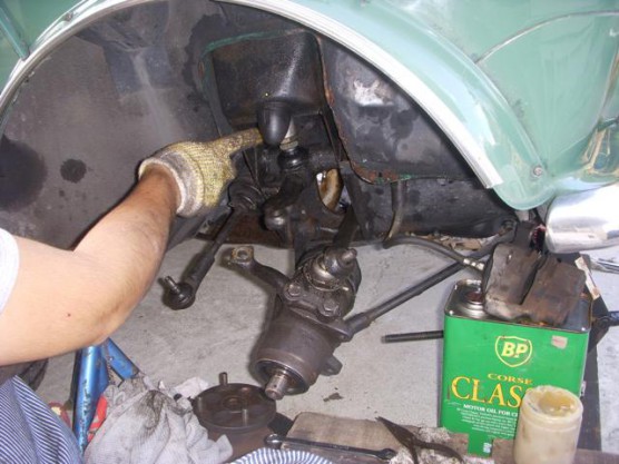 マーシーさんのミニは、ステディーロッドブッシュの交換作業の真っ最中です。