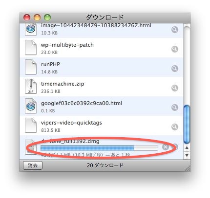 隣りのサブウインドウでダウンロードの状態が確認できる。
