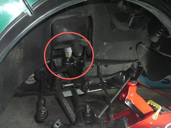 ステアリングポストの付け根付近の床下にあるステアリングラックを固定している