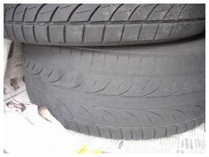 狂った状態で乗り続けていたためにタイヤの偏磨耗を