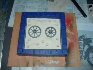 前回の部品鋳造で一応安心したので、今度はシリコンでホイールリムの型を取って金属での鋳造に挑戦です。型取りのために油粘土に、部品をセットして準備してあったけど・・ Reeさんのアドバイスで、コレではチョット無理があるということでホイールのみに変更してシリコンを流し込んだ。 粘土の除去に結構手間取ったけど、何とか片面の型取りは成功? (最終更新2008/03/16/Sun/19:21:30)
