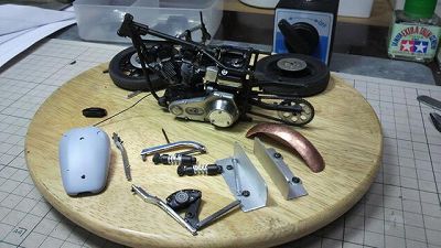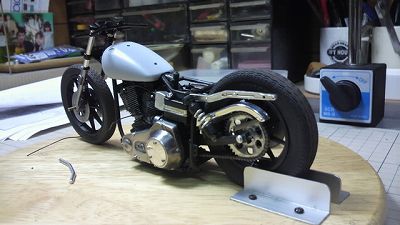 ギャァ〜!フェンダーが合わないサ、失敗だぁ〜! やっぱり仮組で調整は大事だね まぁいいや! やっぱりこのフェンダーは没にしよう アルミ版で作ってみようかな 板金たたき出しに挑戦です・・・ ってことは、フェンダーステーの改造も 必要ってことだよね いやぁ参ったね、うまく出来るかなぁ〜(汗) (最終更新2010/11/24/Wed/13:30:36)