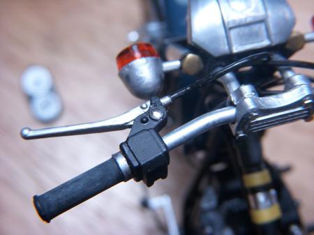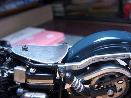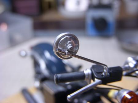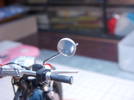 IVYは、バイクのミラーは一つだけの方が好き実車を所有していた時(ハーレーではありません)でも、いつも片方のミラーを外していたし、今乗ってる原チャリもミラーは一つ! ほんとはこれでは危ないよね、でも・・・(笑) という事で、同じようにココでもミラーは一個で充分なので片方のミラー穴は、虫ピンの頭で目隠ししました。 と、今日の作業はココまで! 一日に1〜2カ所位しか進みません・・・遅ッ! (最終更新2010/12/10/Fri/13:39:38)