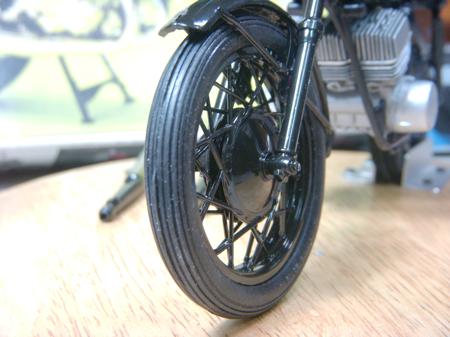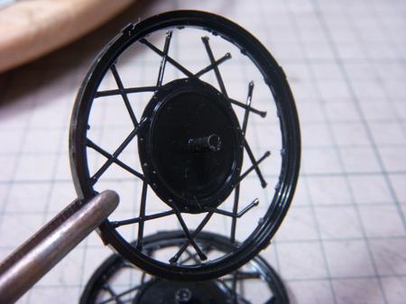 メッキを落としたパーツをよく見るとやはりモールドがあまくボテッとタルい感じがします。タイヤスポークも太くて実感がわきません。 タイヤ中央のパーティングラインも目立ってます。 (最終更新2010/12/31/Fri/00:55:32)