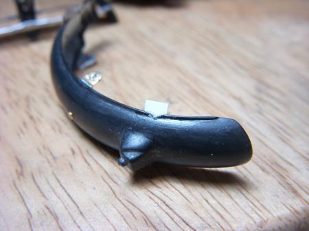 トップブリッジの一部が欠けてしまった。 メーターパネルの取付けピンをニッパーでカットした衝撃でいっちゃました(泣) つくづくもろいプラスチックです。 何十年も前の製品なので既に材質が劣化しているのかも知れませんね (最終更新2011/03/11/Fri/11:10:15)
