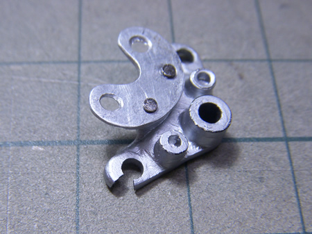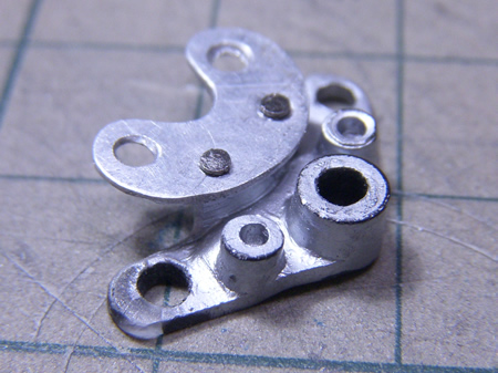 リアブレーキのケースにリンケージと共に一体整形だったブレーキケースロックバーは、一応使うつもりで切り取って置いてあったけど・・・ヤッパリ、厚みなどが気になってしまって結局アルミ板とアルミ棒で作り替えた (最終更新2011/03/14/Mon/11:32:49)