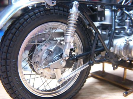 リアタイヤ周りの組み立てが結構進みました。やっと形が見えて来て、だんだん楽しくなって来た。 ブレーキリンケージのバネは、実車ではゴムカバーで覆われているようだけど表現のアイディアが思いつかなかったのでストックしてあったウェーブのA-spring No-1を利用してみた。 う〜ん、「無いよりはましかな」という感じだけど・・・ その周りのディティールを含め、もう一工夫頑張ってみた方が良かったみたいです(反省) (最終更新2011/03/14/Mon/12:02:54)