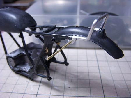 フレームエンドの修正、リアフェンダーの位置修正が終わったので、とりあえず仮組みしてバランスを見てみる。仮組み段階で接着剤なしでもしっかり取り付ける事ができるようになりました。 結構いい感じだと思います。 (最終更新2011/02/08/Tue/14:54:06)