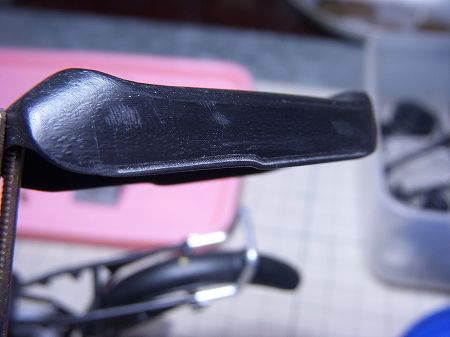 資料写真をよく見るとハンドバーは、リアウインカー等と共にフレームに取り付けられており、ジョイント板が溶接されているように見える。そこで、同じようにジョイント板を作ってみた。 最初は、同じ形に削り出したつもりだったけどフレームに合わせて修正しているうちに左右非対称になってしまいました(汗) あ〜あっ!やっぱりへたくそだなぁ〜 やすりを使って手で修正するってほんとに難しいです。 まぁ〜、ここは左右同時に見えるところではないので言われるまでは誰も気が付かないはず・・・? 不本意だけど自分の気持ちさえ妥協させられるのならこれで何とか誤魔化しましょう(笑) (最終更新2011/02/08/Tue/19:01:43)