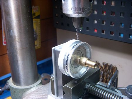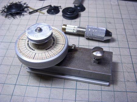 さてお次は・・・スポーク用の穴を開けるために簡易割り出し盤にハブをセットする。 治具があるとホント便利だねぇ〜 作っておいてよかったサ 特にこの簡易割出盤はいろんな場面で重宝してるヨオ〜(^^ (最終更新2011/02/09/Wed/13:49:49)