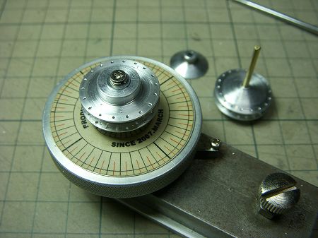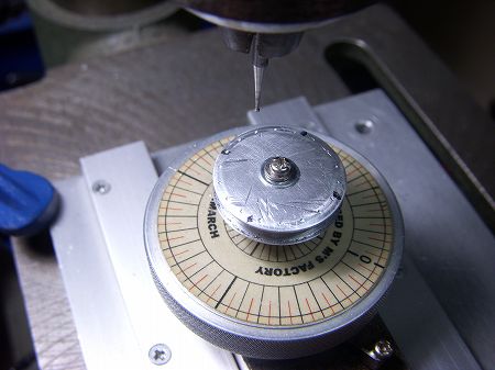 スポーク穴をあける割出作業です。今は割出盤をボール盤にセットする場合、バイスを使って固定しているけど、芯だし作業や移動が非常にめんどくさい。 専用の固定金具を作ったほうが作業効率がよくなるはずなので今度の休みに材料を物色しに行ってみようか・・・ 物を作るための道具を作る! これがまた、ものづくりの楽しみなんだよなぁ〜 工作趣味にはたまらないサァ〜(笑) (最終更新2011/02/12/Sat/13:39:44)