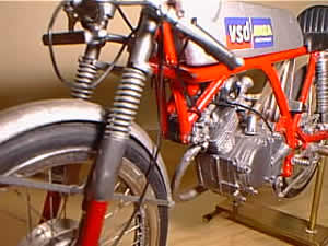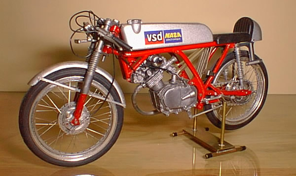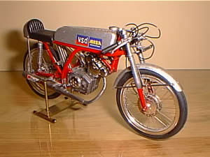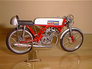 HONDA CR110 (ホンダ CR110) ■グンゼ 1/12 SCALE 同じくカタログから入手のモデル、ただこのころから少しは色を塗った方がいいだろうと思いフレームやタンクに筆塗りをしました。ホワイトメタルがこんなにも柔らかいと知らずに、エキパイを無謀にもモーターツールで削ってしまいガタガタです。知らないということは恐ろしい(T_T) こちらもレストア予定 |