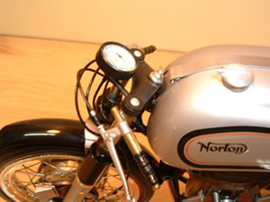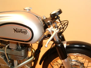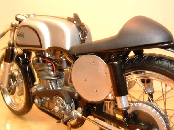 展示会に出展しようとして搬送中に破損してしまったNORTONの修理がやっと終わりました。早速新しいデジカメでの撮影ですが、なれないカメラに悪戦苦闘!ほとんど手ぶれ、ピンぼけでせっかくの撮影が台無しでした。なんとか良く映っている物から選んでの掲載です。 |