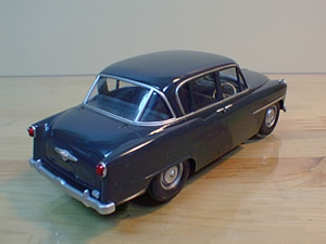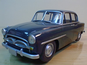 Toyopet CROWN RS (55'トヨペットクラウン 昭和30年型) ■アリイ 1/32 SCALE なんと云っても観音開きのドアが特徴の初期型のクラウン。 子供の頃に見たハイヤーのイメージは強烈な印象として今でも頭に焼き付いています。当時沖縄では、こんな国産の車は高嶺の花でタクシーも全て軍の払い下げの車(アメ車)を使用していました。もちろん我々庶民がクラウンのタクシー(ハイヤー)に乗れるはずもなくあこがれの的でした。払い下げの車(アメ車)をタクシー、クラウンのそれはハイヤーと呼んでいました。 このキットも完全にストレートで何も手を加えずに仕上げてあります。展示会に出展した時に観覧者のお子様が突然、ゴジラと化しフェンダーミラーを左右とも破壊してしまいました。 |