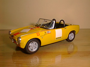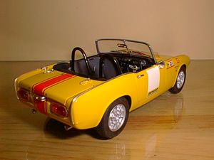 HONDA S800 RACING (ホンダS800レーシング) ■タミヤ 1/24 SCALE 当時吉永小百合がアイドル全盛期で銀幕の向こうで共演の男優とこんなスポーツカーで颯爽とドライブをするシーには、子供ながらにとても憧れたものです。そんな時、隣に住むとてもきれいなおねーさんのもとに彼氏が、真っ赤なこのスポーツカーでお迎えに来てるではありませんか。貧乏長屋のこんな場所でこんな映画のような車を見た時、目は点になり口はアホのようにポカンと開き言葉もでませんでした。 今思えば、そのおねーさんは、まるでプリティーウーマンのジュリア・ロバーツのようで彼氏は、リチャード・ギアとオーバーラップしてしまいます。あのおねーさんは幸せをつかんだのだろうか・・・・・? ボディーには、何も手を加えずにストレートに組上げてます。さすがにタミヤ製はストレスが無くてとても良いですね。F/Rフェンダーのモールはメタルックで処理。内装は、メーター穴を完全に開口し、各径のアクリル棒を差し込み裏側で面一に処理して裏側からデカールを木工ボンドを薄めたやつで表張りしました。(写真では見えにくいかも?) |