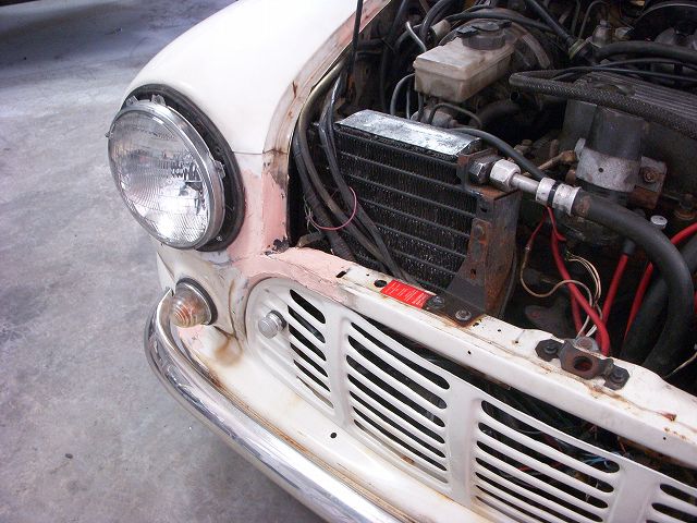 フロント右側のパテ修正の部分も板金を切り継ぎで補修したらしい