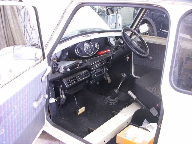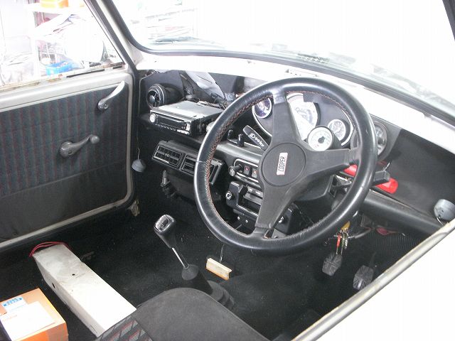 ミニ独特の立ったステアリング位置は、今後アジャスターで下げる予定だ