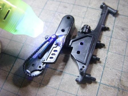 タミヤの光硬化パテを使ってみます。 当てている光は
