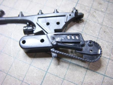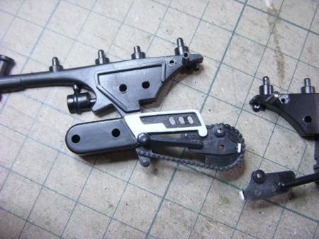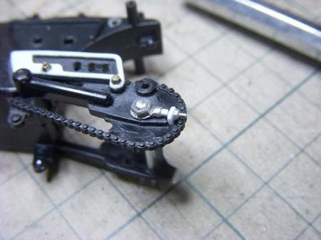 1.5ミリのアルミ棒でシャフトを作り ガタもゆがみもないのでヨカッタです♪ ツルツルだったチェーンも 後は、塗装で何とか表現出来れば良いですね(^^) |