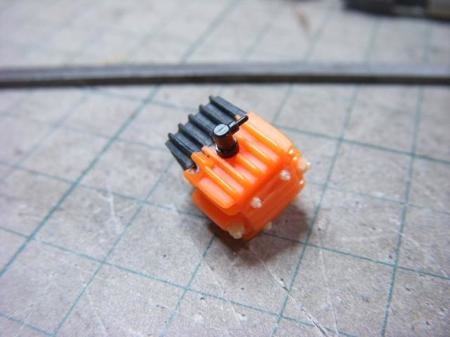 これは修正後のエンジンヘッドの部分だけど フィンの間の修正は ボルトなどのモールども一旦削り取って スパークプラグは省略されていたので |