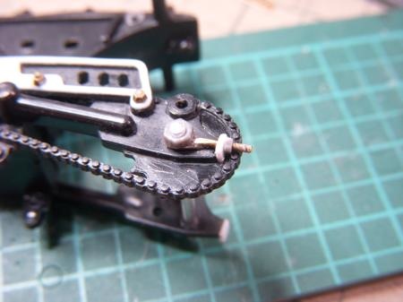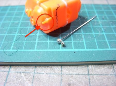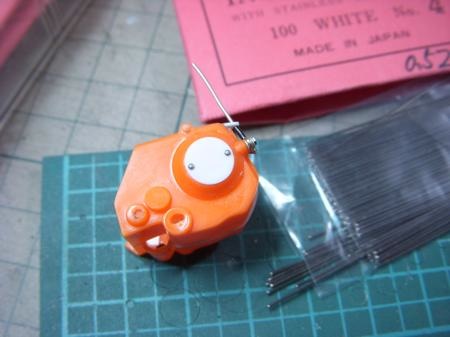 小さなボルトは、有頭インセクトピン(虫ピン)を使います。 頭に切れ込みを入れて まぁ〜これでもいいか(^^+) |