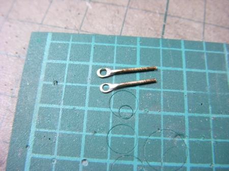 次にシンチュウ棒を半田で接着しました。 ここでは、0.7mmのチンチュウ棒を使い 画像では長さが合っていませんが |