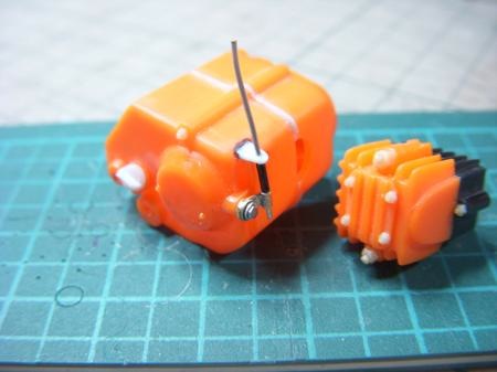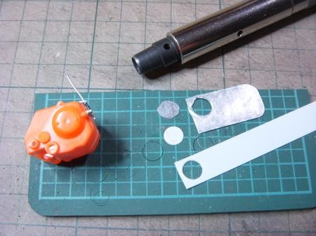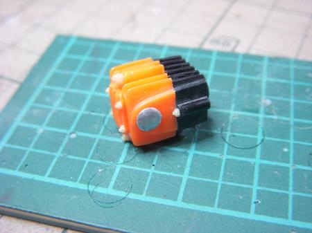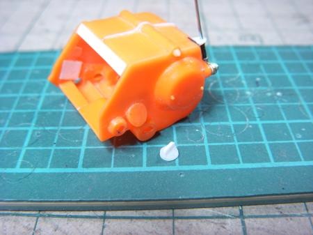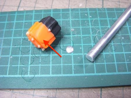 実車では、この部分にもカバーが付いています。 キットではモールドも省略されていてのっぺりとしているのでアルミ棒を輪切りにしてそれらしくカバーを追加します。