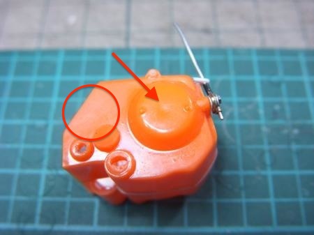 シリンダーを付けてみて干渉していないかの確認です。 丸印のオイルキャップはモールドが甘いのが気になるな〜。 エッジを出して、シャープに修正するよりは |
