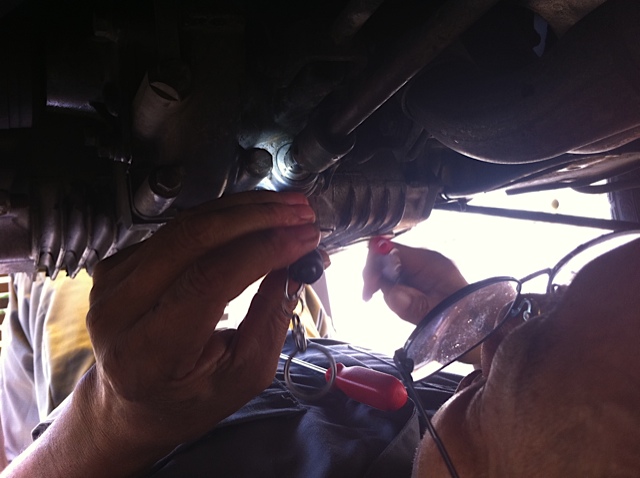 (2)エクステンションロッドカップリングからエンジン側のピンをポンチを使って外します