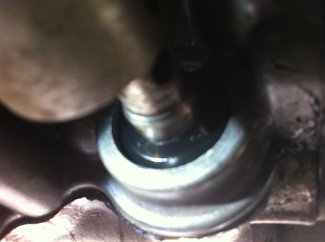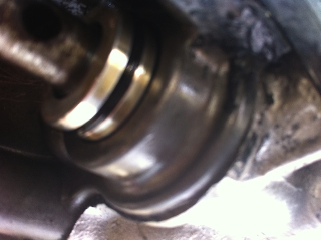 (3)ブーツとシールを外した後、問題のシャフトブッシュを外すためローターを使用して細い穴を開けています