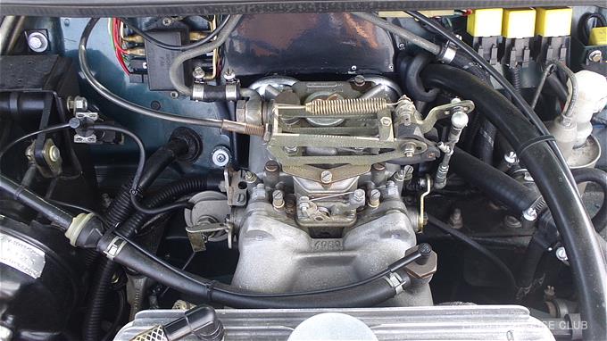 なんと、向かって左側のフェンダー隔壁を切り抜いて、綺麗にはめ込んであるので、エンジン回りがとてもすっきりしているんです。