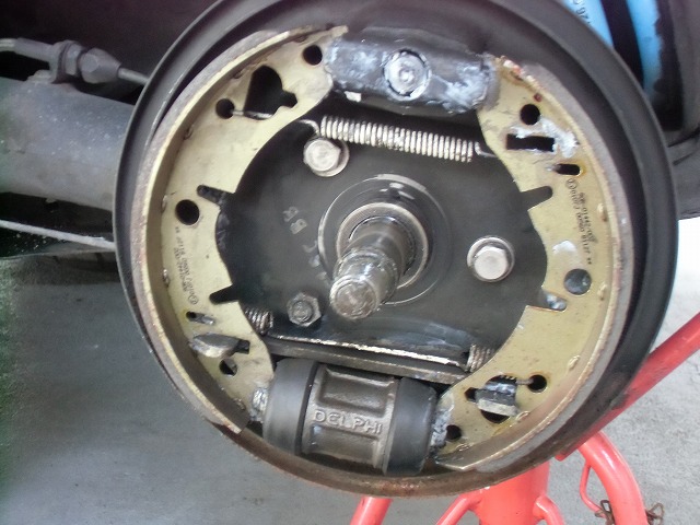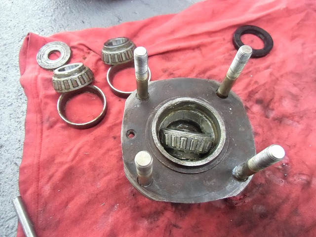リアハブのハブキャップを取り外し・ハブナットロックピンを抜き・ハブナット緩め・助手席後ろ側はハブナットの締め付け方が逆なので注意(右側に回すと緩みます)リアハブ本体が取れますが、グリース切れ/錆で硬着で抜けにくい場合が有りますが、粘り強く頑張って下さいね!・・普段から定期メンテの必要性を感じる瞬間です!