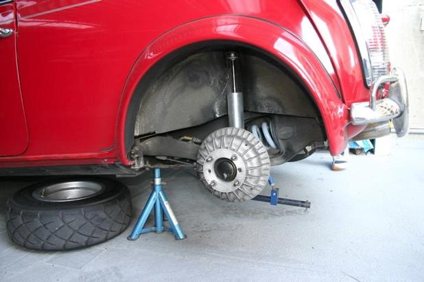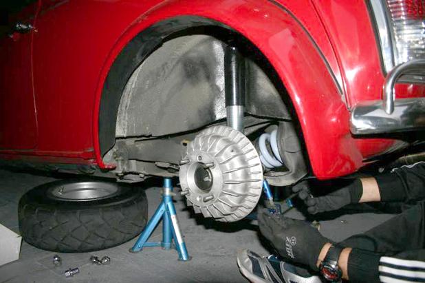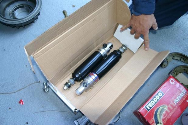 もちろんプロテック 高性能アルミ軽量ショックアブソーバー は車一台分(4本)手に入れてありフロント側のショックは既に自宅のガレージで交換取付済みだと言うことで、今回はやり残しておいたリアのショックを交換をするそうです。